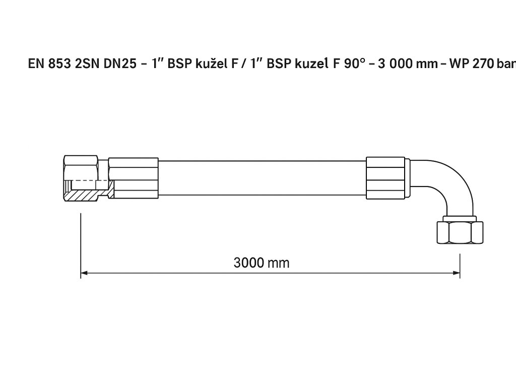 Hydraulická hadica EN 853 2SN, 3000 mm, 1"/1" 90°